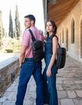 • Two front zipped pockets: small upper pocket, and a larger zipped pocket below it with removable pouch