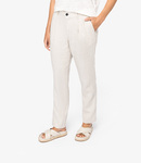 100% linen. Belt loops.Inner waistband with navy tape (white is self colour).Recycled metal zip fly with recycled plastic button over.Two side pockets.Two front pleats with a permanent leg pleat front and back.Rear false piped pockets.Reinforced stitching.Invisible leg hem finish.Tag free.Garment washed after assembly, colours may vary slightly.Special Order items are non-stock Items ordered from the supplier. These items are non-returnable, and lead times may vary.